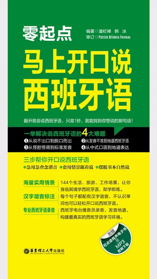 《零起点,马上开口说西班牙语》是西班牙语新手系列丛书中的一本。本书植入真实可感的生活情境,邀请专业西班牙播音员录音,三步帮你开口说西班牙语:急用急查念谐音、套用情景跟着说、摆脱书本自然说。
