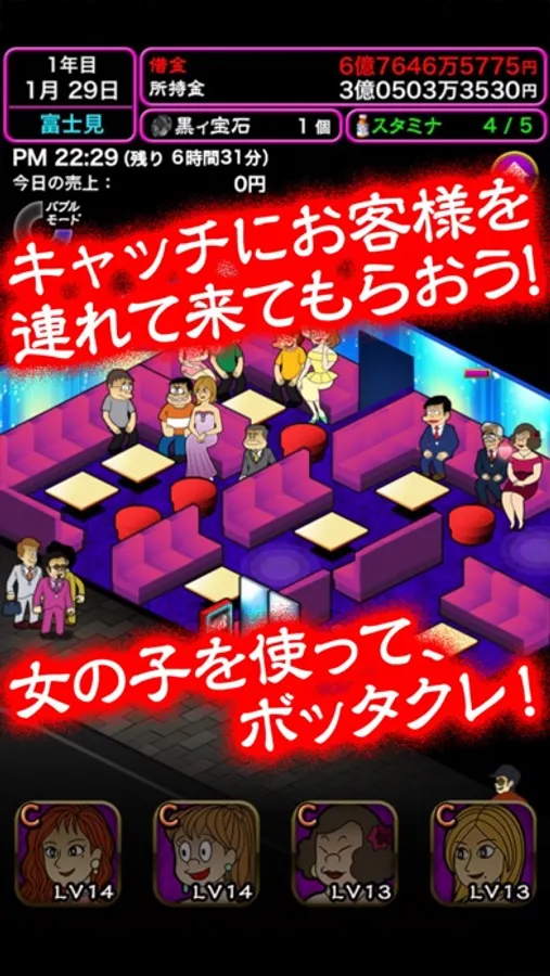 『ぼくのボッタクリBAR2 -超倍速-』はボッタクリBARの経営ゲームです。