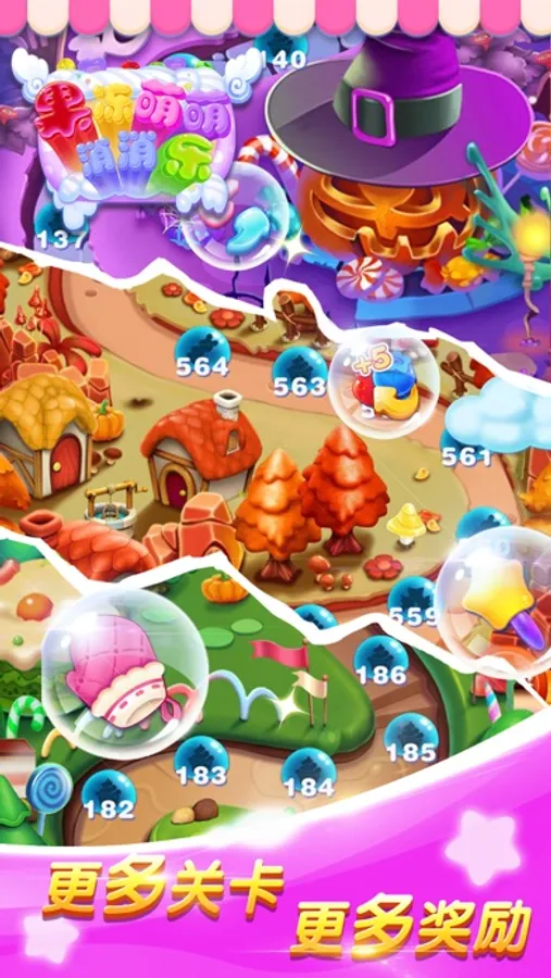 *富有挑战性的闯关地图、梦幻甜美的糖果风格、丰富趣味的音效!