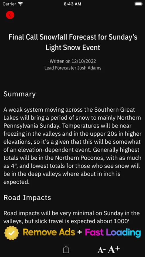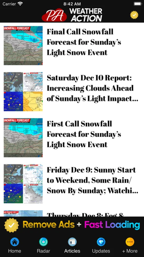 NWS Forecast & Radar on a clean and colorful layout, with weather alerts, minutely forecasts, future radar, and full-text forecasts. Also, our latest handcrafted articles and model updates. All with minimal to no ads, download today!