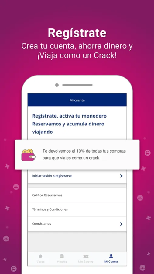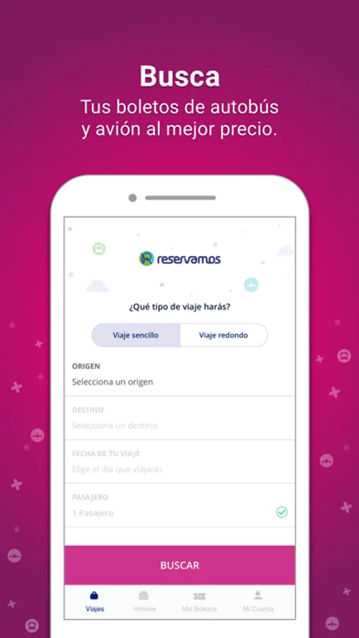 Descarga la App de Reservamos, compra tus boletos de autobús y avión, y reserva tu hospedaje desde tu celular.