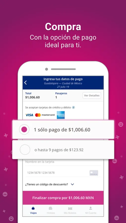 ∙ Puedes realizar tu pago con tarjeta de débito, tarjeta de crédito hasta en 3, 6, 9 o 12 pagos fijos con bancos participantes o pago en tiendas OXXO.