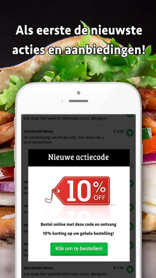 Download onze app en blijf op de hoogte van het laatste nieuws en de nieuwste acties, aanbiedingen en kortingen. Via onze app kunt u onze menukaart bekijken en direct vanaf uw telefoon uw bestelling plaatsen. U kunt via de app ook met iDEAL betalen!