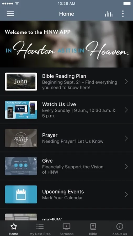 Welcome to the Houston Northwest Church app! Here you can watch recent sermons, give online, connect with others as well as find your next step!