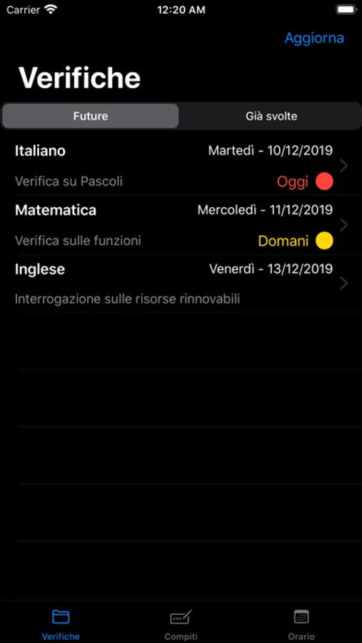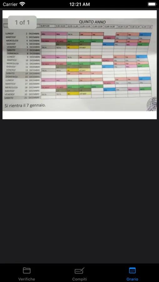La funzione principale dell'app è la visione delle verifiche, compiti e orario delle lezioni del 5º anno.