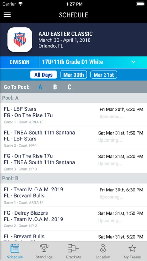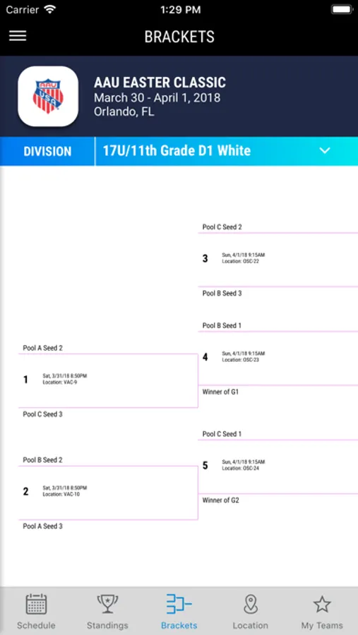 Next Up gives coaches, parents, and fans real time tournament information to enhance the event experience. Users can: