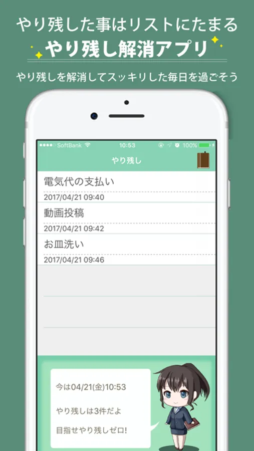 やる事を登録し、終わったらチェックを入れる簡単やり残し解消アプリ。