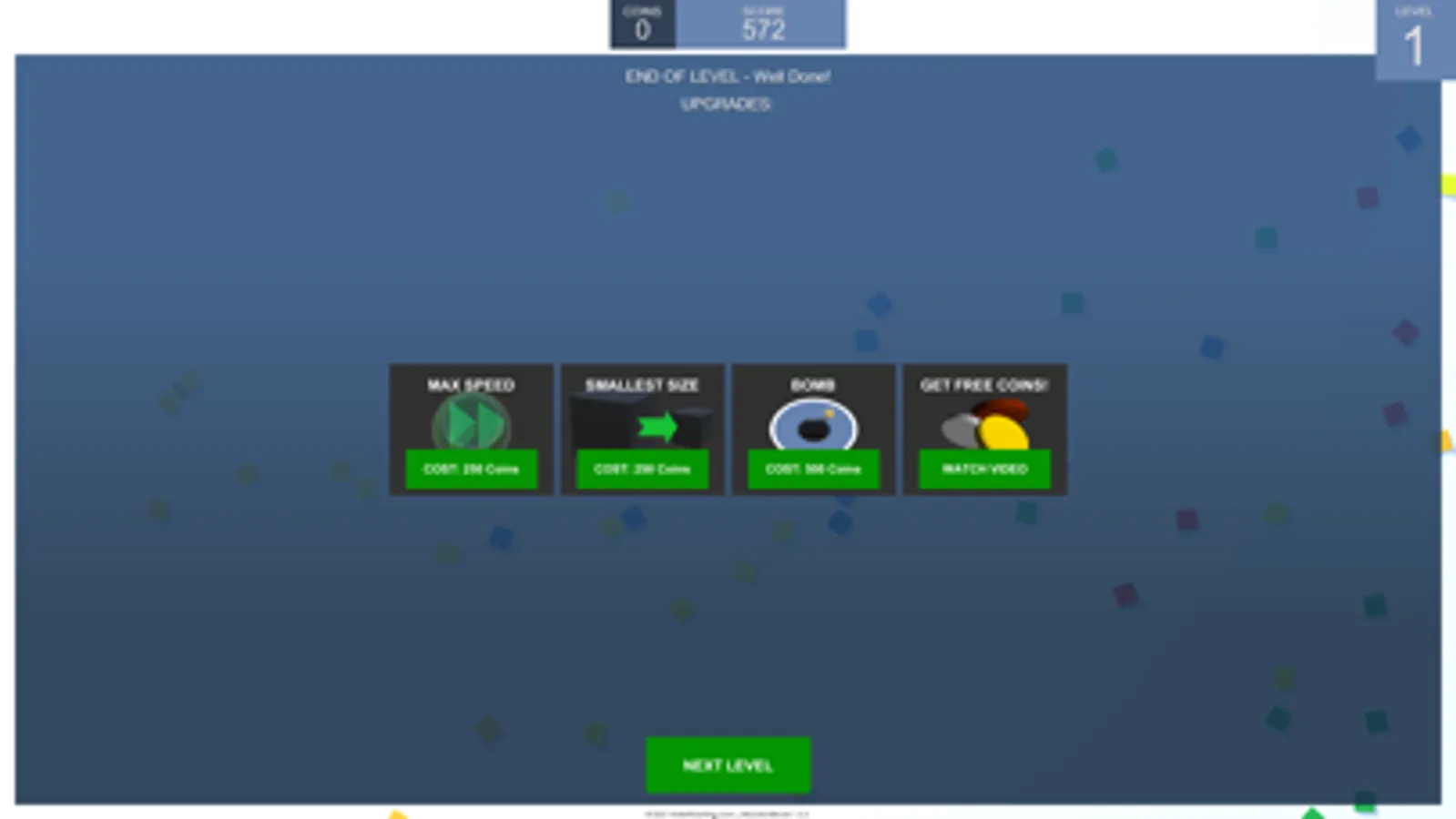 Avoid the blocks, collect the power ups (or downs!) and try to beat the high score.