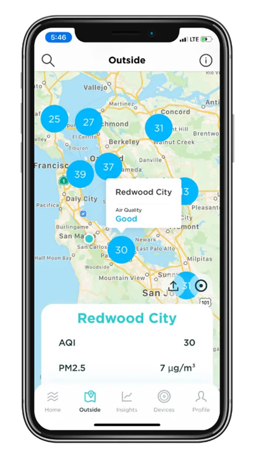 • Understand what your outdoor air quality levels are – real-time data on AQI, PM2.5, Ozone, CO, and NO2. Wynd sources data from certified institutions and governmental air quality stations