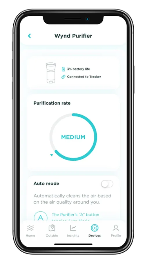 • Connect your Wynd Home Purifier or Portable Purifier to control the purification level remotely