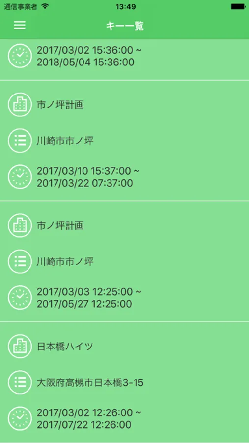 Timeline錠前を設置した複数物件の鍵を1つのアプリで利用可能です。