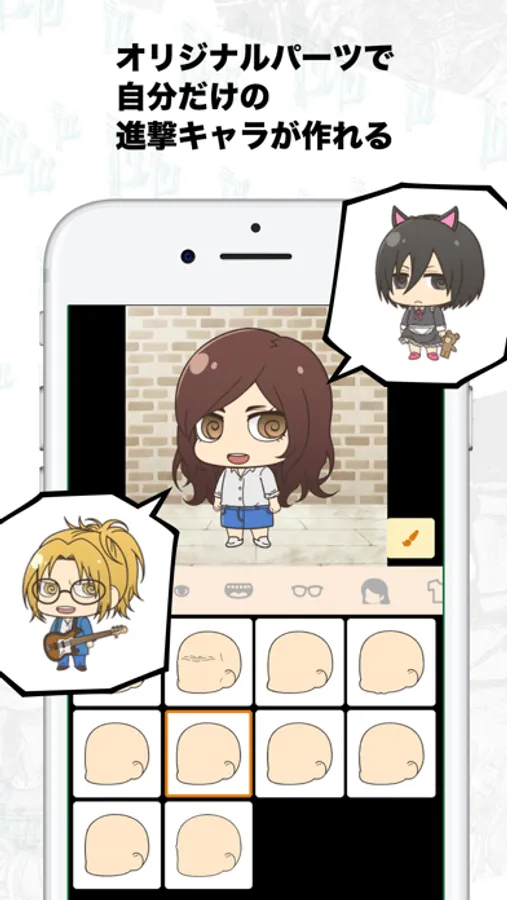 オリジナルアバターパーツであなただけの進撃風キャラがつくれます。
