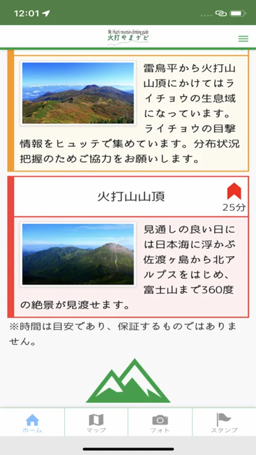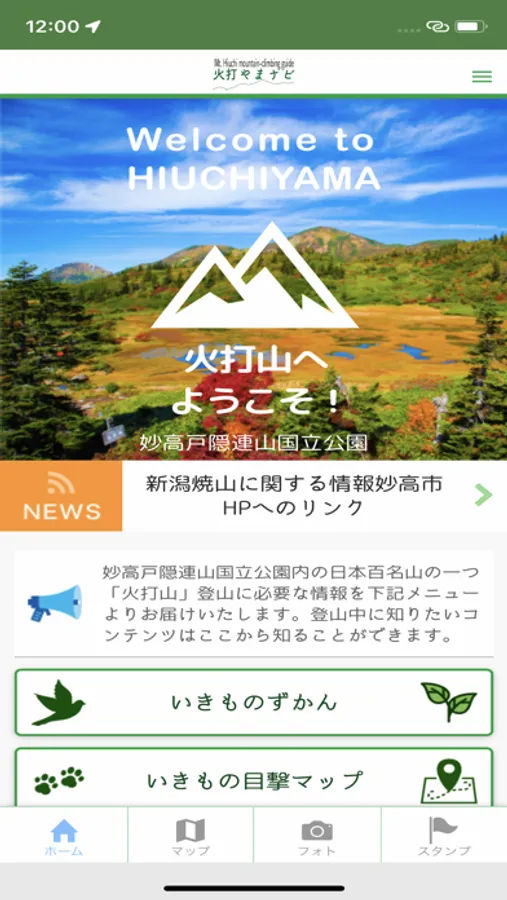 本アプリは、妙高市杉野沢笹ヶ峰火打山登山口から火打山山頂までの約10kmの登山道の10ヶ所に設置されたビーコンからの電波を受信することにより、登山者がアプリから火打山の自然情報を容易に得られることで、利用者への火打山の自然への理解や親しみを深め、適切な利用と保全を推進することを目的としています。