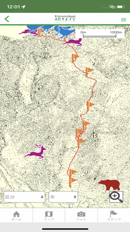国立公園内の登山道周辺の地図がダウンロードされます。この地図上での現在位置が確認出来ます。