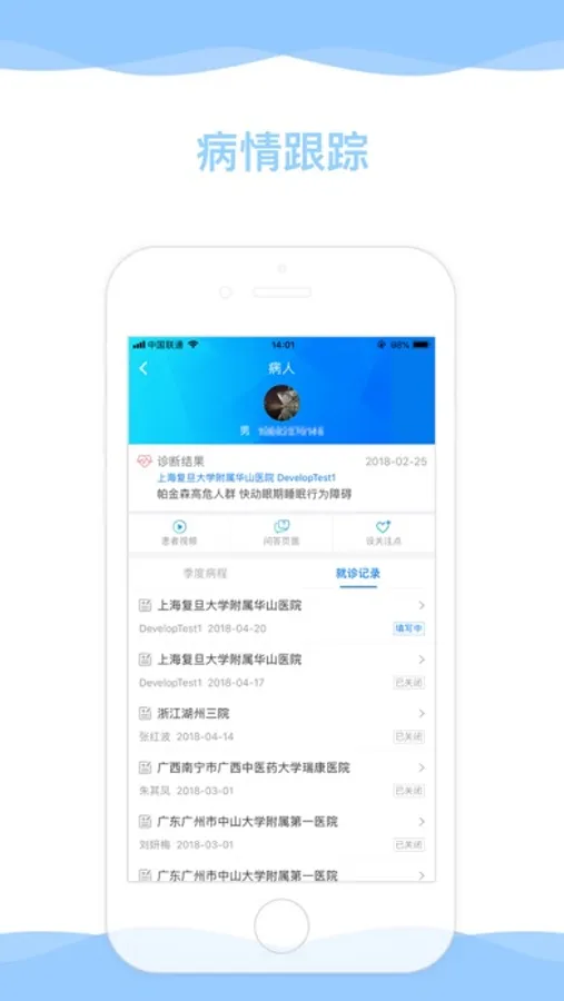 “帕为”App医生端,由上海帕务信息科技有限公司研发。同“帕为-病人端口”分别指向医生团体和患者受众,此系列App面对医患两个人群,进行有效对接,可使医生在线上即可对病人进行病情评估,诊断随访,病程管理和双向转诊,为行动不便的帕金森病患者提供可靠有效以及及时就诊途径,医生端的医疗团队为复旦大学附属华山医院运动障碍组牵头,联合全国50多家医院的专业神经内科医生,基本上能够覆盖帕金森病病患的一二线城市就医需求,为病人提供多地区,多选择的专业指导意见。