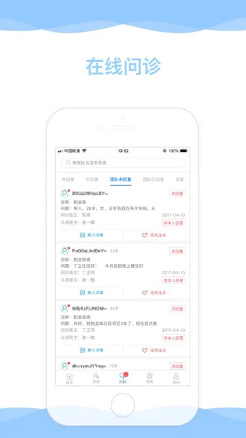 【专家问诊】:可查看患者提供,在线回复。可通过知识库复制答案回复以节省时间