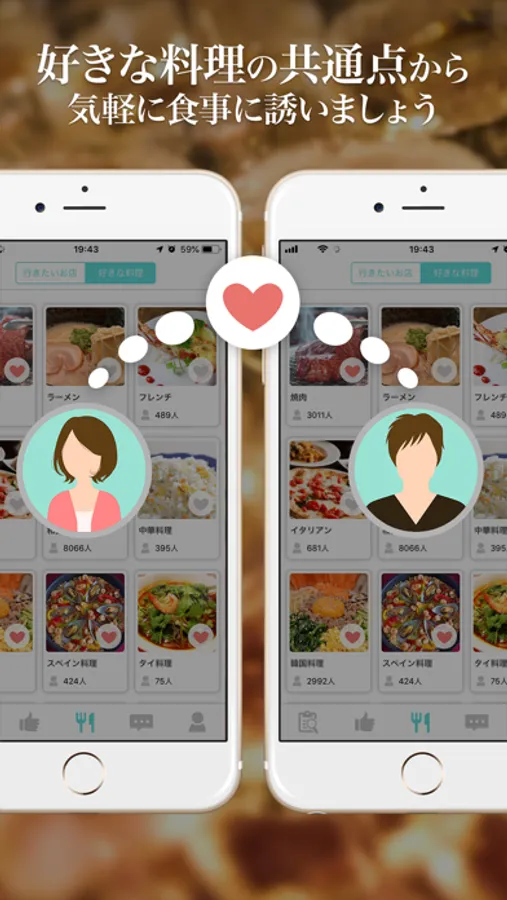 「行きたいお店」や「好きな料理」で繋がるマッチングアプリ!