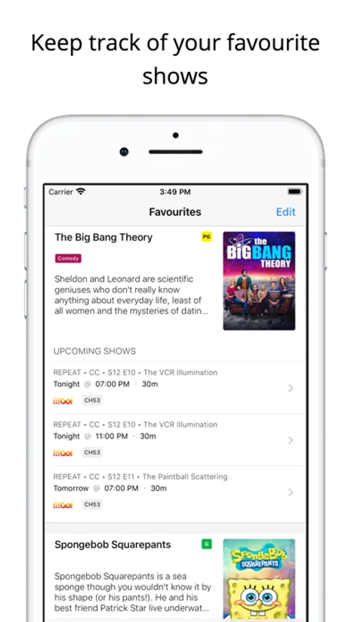 - Keep track of your favourite programs, add favourites to your list, easily check for upcoming episodes
