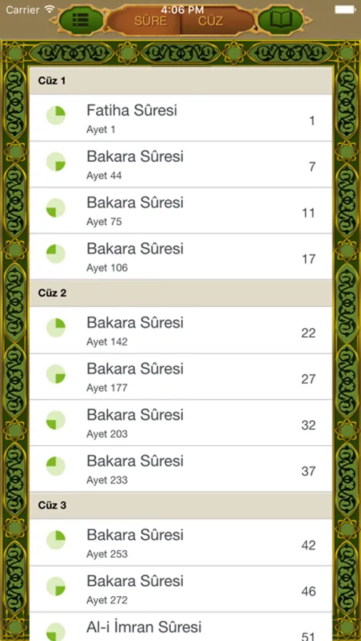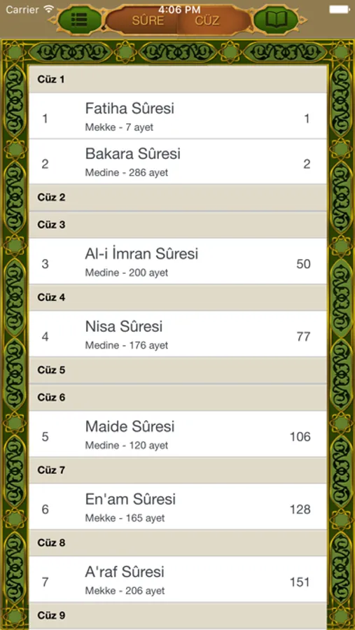 - Sûre ve cüz listeleri ile kolayca istediğiniz sayfaya ulaşın