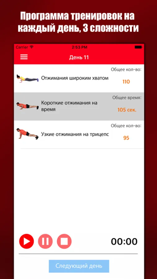 Этот курс тренировок подойдет как новичку, так и опытному. На выбор 3 сложности, сроком: на две, три и четыре недели. В конце каждой недели трудное задание.