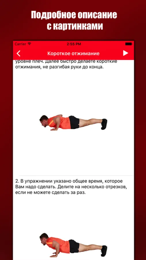 • Подробное пошаговое описание к каждому упражнению с картинками
