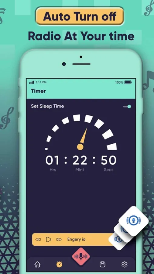 - Provides sleep timer option to turn off the radio playing at the given time.