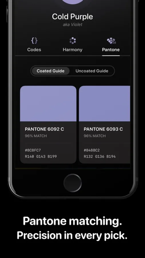 1. Pantone Matching: Snap any color, and Cone seamlessly matches it to the closest Pantone shades (Coated and Uncoated). With up to 10 Pantone recommendations, ranked by matching precision, never second guess your color choices again.