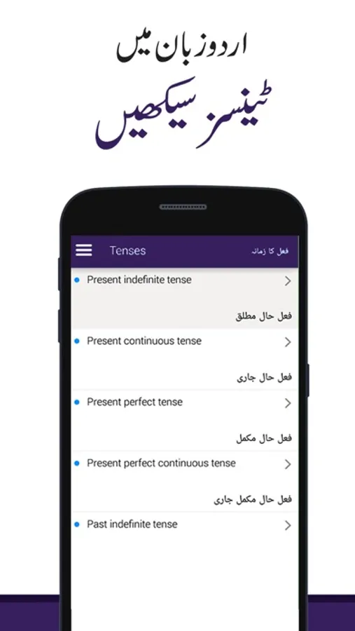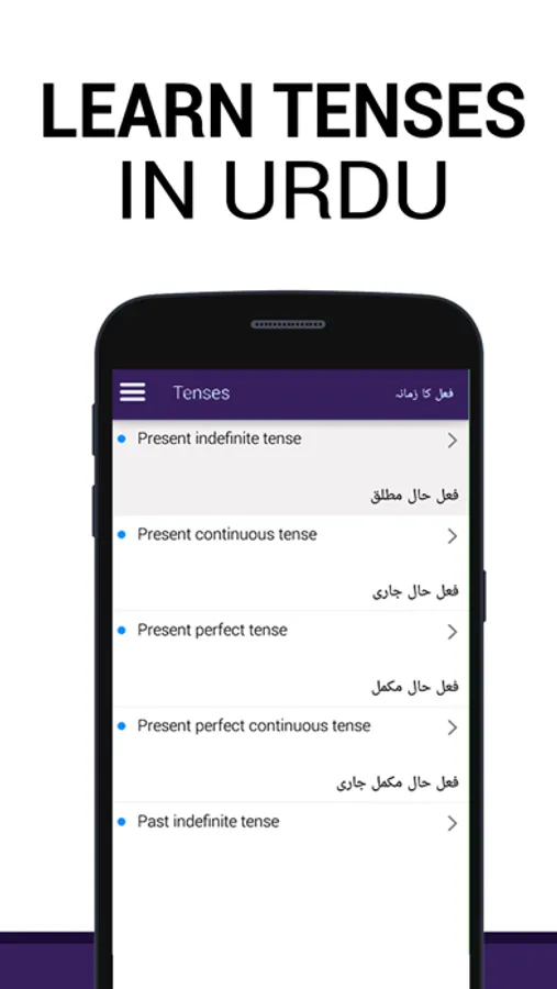 If you have no time to learn the basics of English Tenses in Urdu then grab your cell and download this app which is a simple guide to learn English Tenses with examples in Urdu.