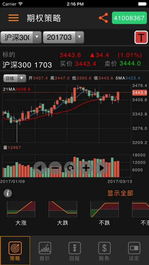 》全新视觉的期权策略版面,快速选择进场策略,交易更上手