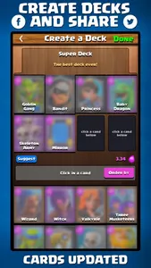 This is an UNOFFICIAL Guide Deck Social Builder for Clash Royale. It is developed by an independent developer, not affiliated to the game developer or publisher. The app is intended purely to assist players, and is intended to be used alongside the game. All characters, images and game logos are the property of their respective owners. Usage in this app falls within guidelines of "fair use".