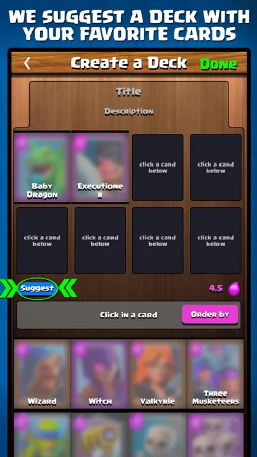 We suggest a deck with your favorite cards, so you have advantages over other users.