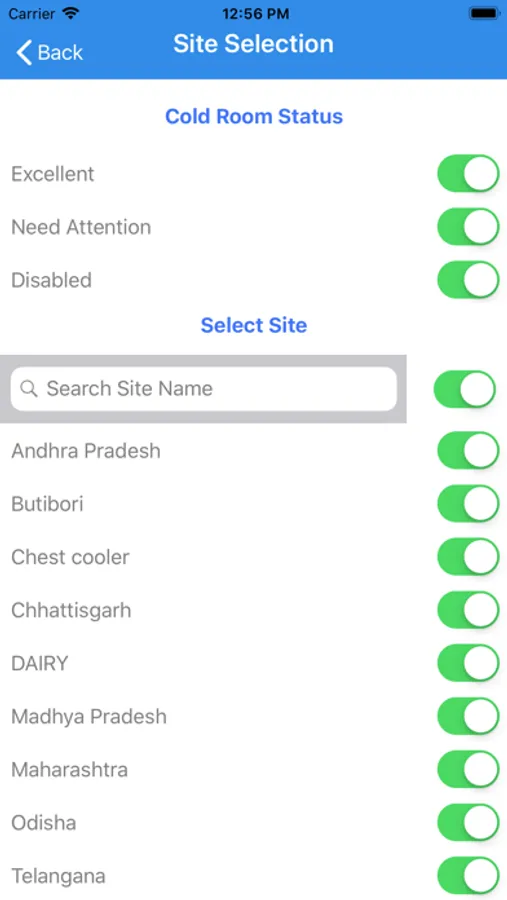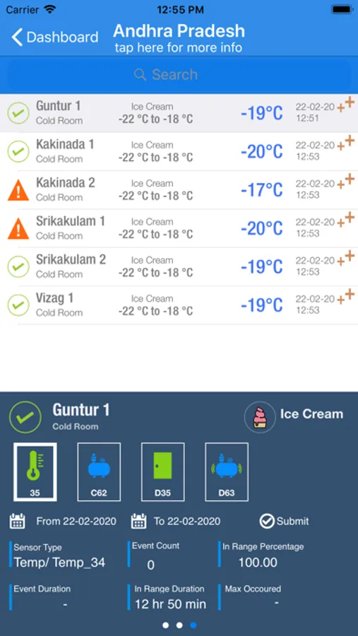 The cold room door open-close status, compressor, fan ON-OFF status is also available in the app.