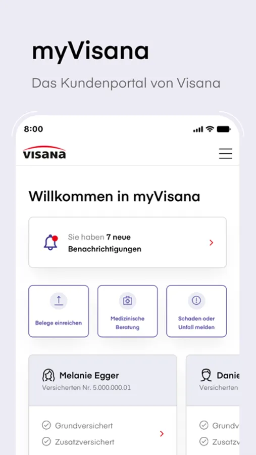 Für die Nutzung von myVisana gelten die Allgemeinen Bedingungen «myVisana» unter visana.ch/myvisana