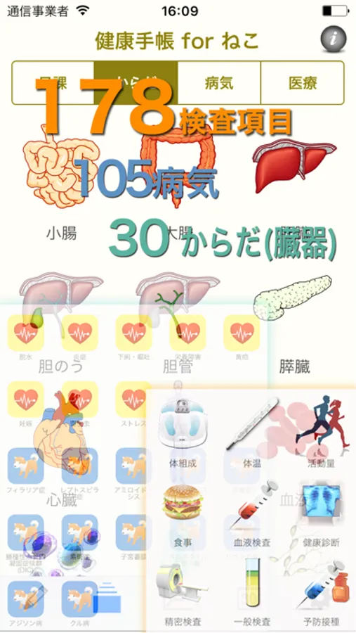 心配な臓器のアイコンから臓器の調子を知りましょう