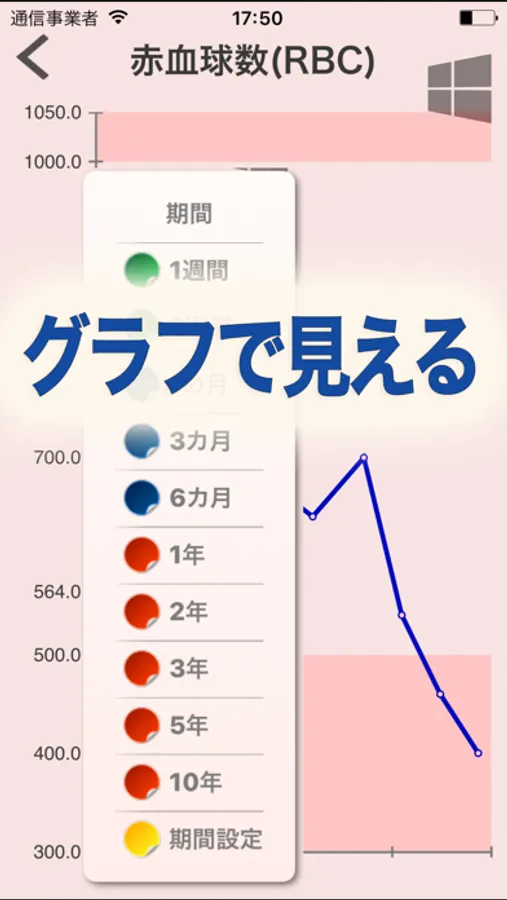 1週間、2週間、1カ月、3カ月、半年、1年、3年、10年のからだの変化をグラフで確認できます