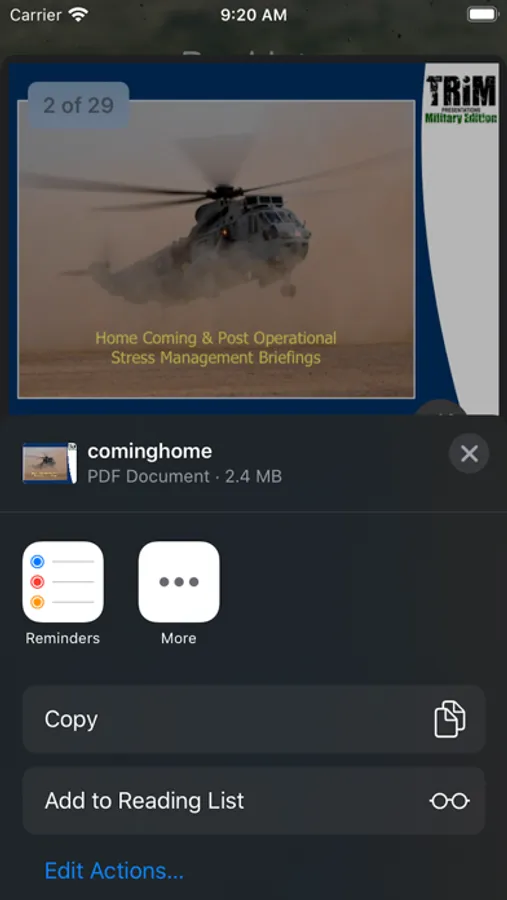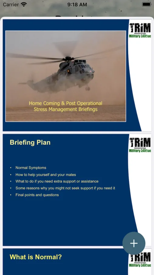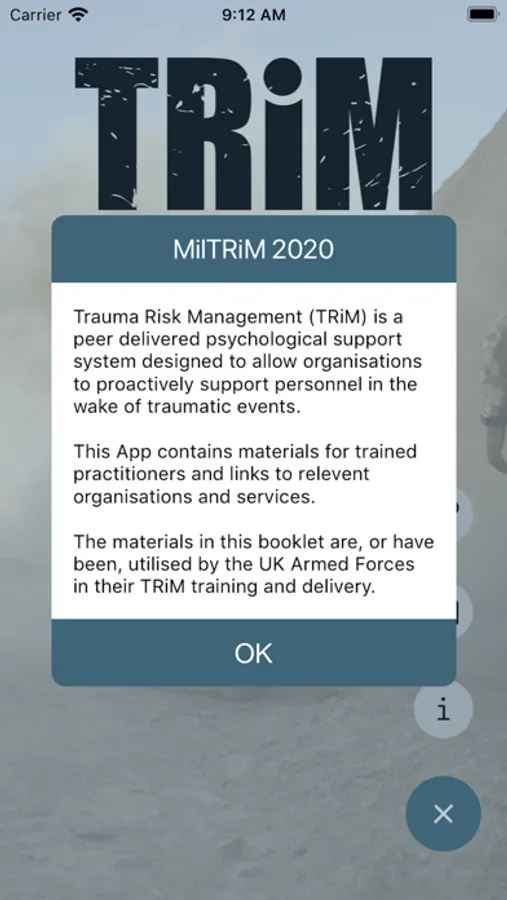 This App is a utility for people involved in Trauma Risk Management or TRiM, and those involved in the psychological care and welfare of UKAF.