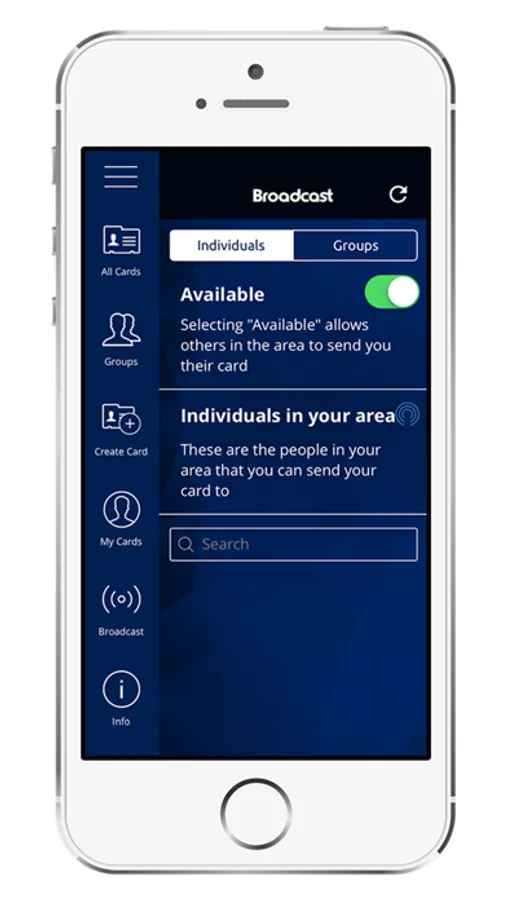 · Exchange e-Cards at the click of a button – Using GPS proximity, users in the same vicinity can trade electronic profile cards in seconds. Locate their username on your app (automatically displays others near you), and share your pre-made e-Card with one click of the screen. This completely replaces the awkward phone number swap.
