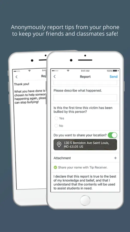 The Safe2SpeakUP app is the student companion to CrisisGo Bully & Tips. Using Safe2SpeakUP, students can report bullying for themselves or their friends, as well as other tips or incidents as defined by their school. They can message with groups that are permissioned to them by their school districts, or with the school's safety team in charge of bullying. Additional features such as a panic button can also be turned on by the school. All activities are recorded for reporting purposes, and when selected, anonymity is ALWAYS preserved. Feel safe to speak up, and let's unite against bullying!