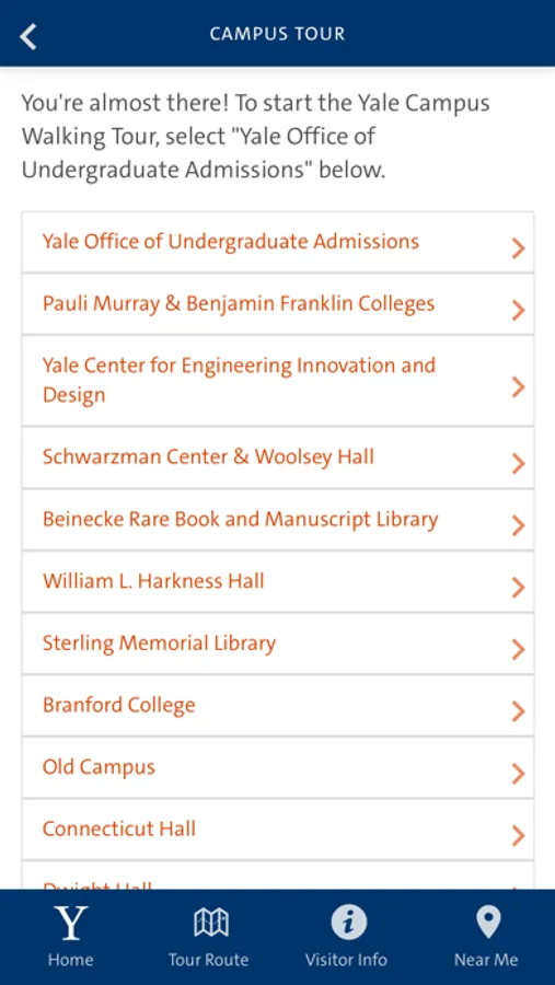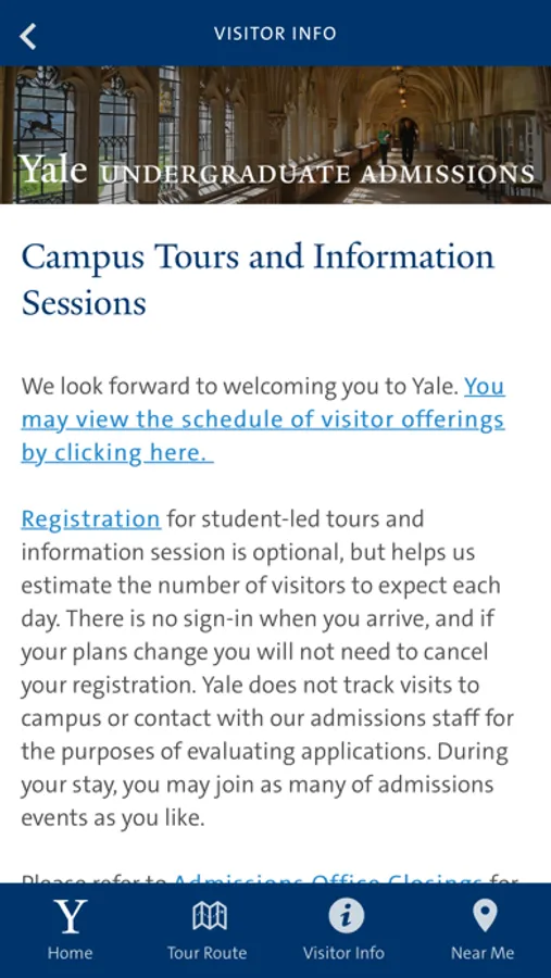Explore Yale on your own schedule. The Yale Admissions Campus Tour app offers an enriched walking tour experience for visitors who are unable to attend a live tour. Welcome to Yale and New Haven!