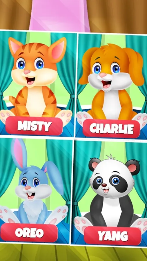 But which pet shall we wash first, Misty the kitten, Oreo the puppy, Charlie the bunny or Yang the panda?