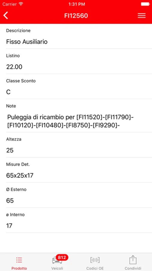 La ricerca viene effettuata all'interno del catalogo della Fi.Di. Ricambi che ad oggi contiene quali 70.000 prodotti divisi tra ricambi asiatici (Kaishin), tendicinghia (Caliber,Autoteam,FFTB e KM), Freni (Brembo e Delphi Freno), Batterie (Elettra), Frizioni (Luk),Ammortizzatori (KYB e Bilstein),Tiranteria (Delphi),Ferro Gomma (Way Assauto,Metalcaucho), Termostati (Vernet), Cinghie (Dayco), Starter e Alternatori (Elettra +), Cavi Candela (Arp), Alza cristalli (Lift-Tek),Spazzole Tergicristallo (Autoteam),Compressori (Denso),Aria Condizionata (CTR), Molle a Gas (SAG)
