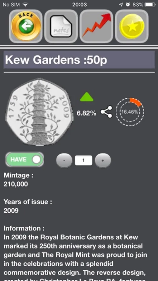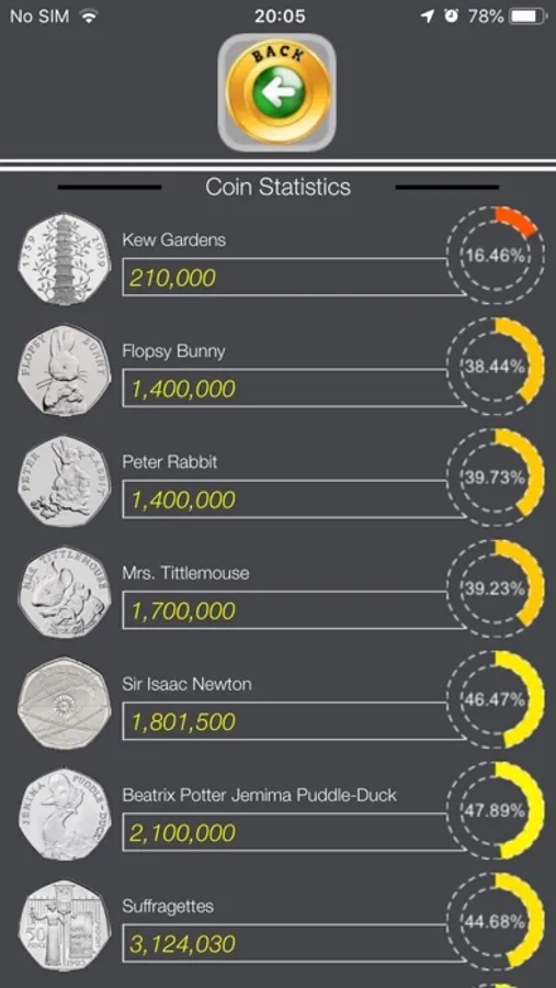 > Live Collections allowing users to see the actual percentage of coins collected by users of the application (available as part of Live Prices In-app purchase)