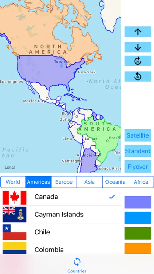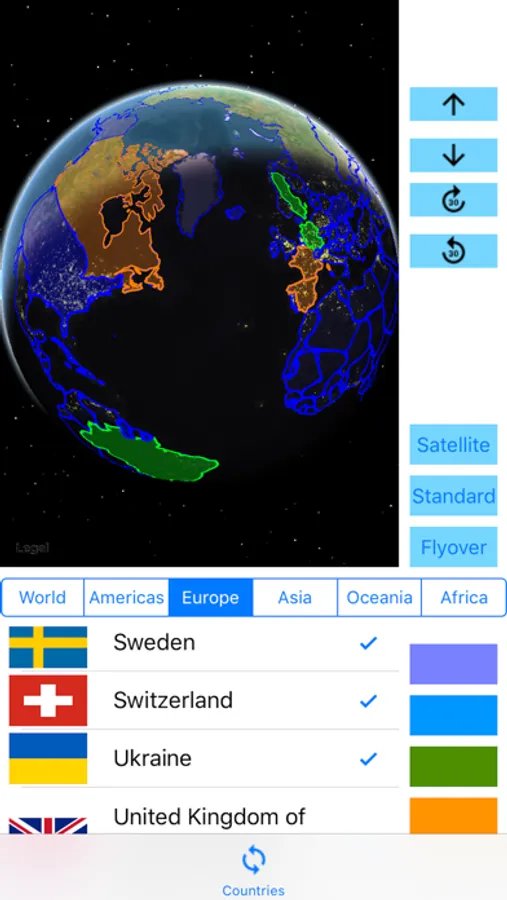 When the app is launched again, the selected countries will show up with the user selected color.
