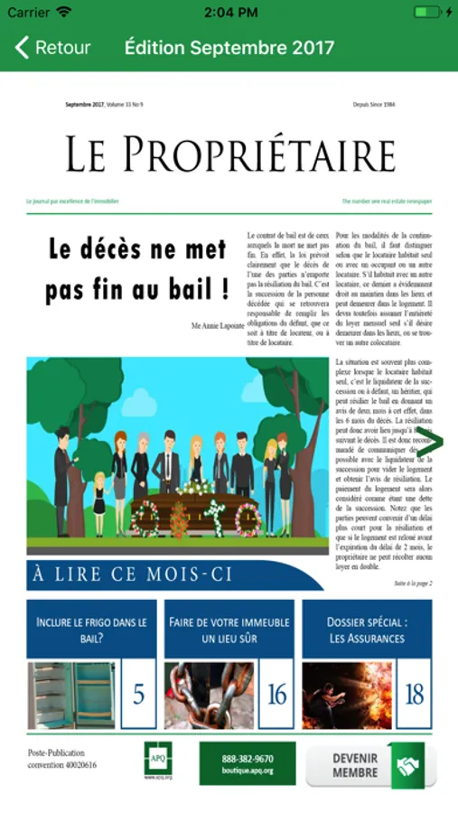 Also use APQ to present your membership card at one of the APQ's partner suppliers, view Le Propriétaire Newspaper every month, search for your suppliers in the APQ Directory, make your rent increase calculations using Calculo, create your electronic leases and send your notifications using Avisarex.