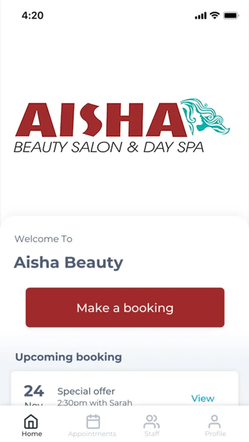 The Aisha Beauty app makes booking your appointments and managing your loyalty points even easier. You're just a few taps away from feeling good and looking great!