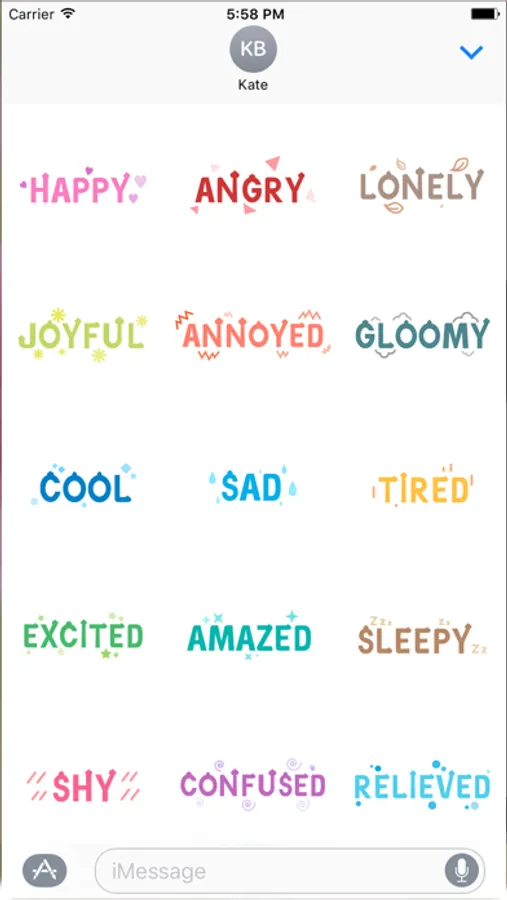 - Contents : Good, Serous, Peaceful, Bad, Helpless, Thrilled, Happy, Joyful, Cool, Excited, Shy, Angry, Annoyed, Sad, Amazed, Confused, Lonely, Gloomy, Tired, Sleepy, Relieved