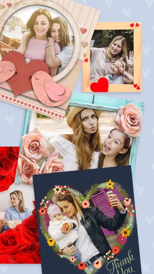 Photo editor to decorate your pictures with sweet Mother’s day picture frames! Go ahead and start downloading Mother’s day photo frames for album – Pic editor app now and get into the mother’s day mood rush!