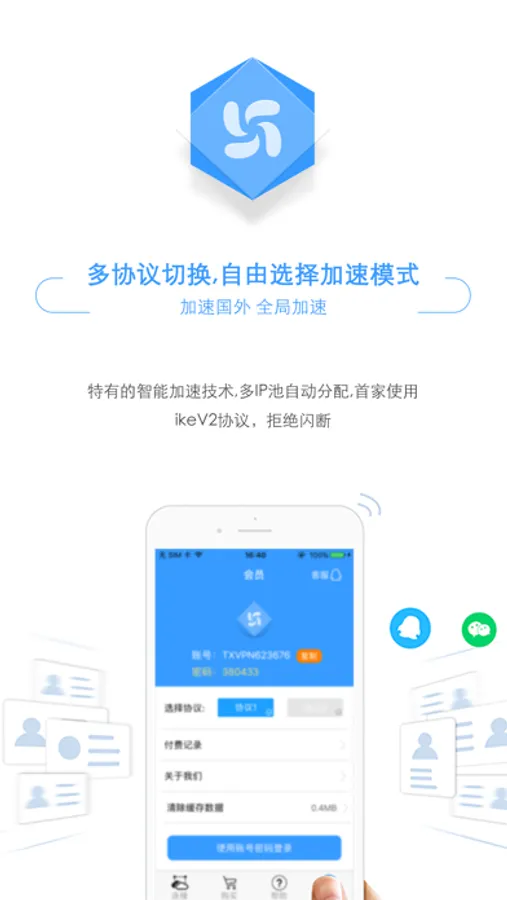 2,极速连接,3G4GWIFI网络切换不中断,实现24小时在线。