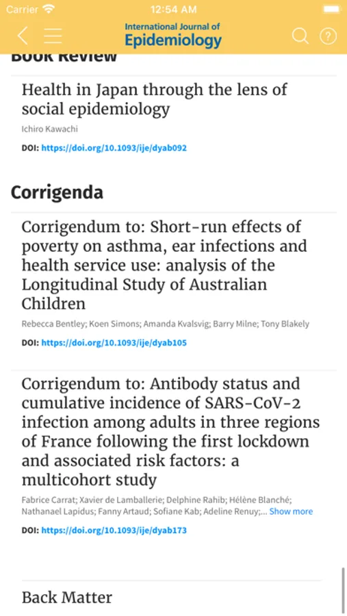 The IJE (International Journal of Epidemiology) app from Oxford University Press enables you to read this leading journal both online and offline on your iOS device (provided you have a relevant personal subscription, institutional subscription, or society membership).