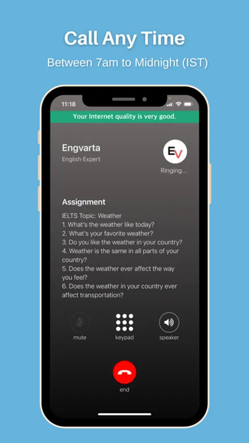EngVarta is a 1 on 1 English conversation practice app where you can practice English speaking over phone calls with live English Experts.